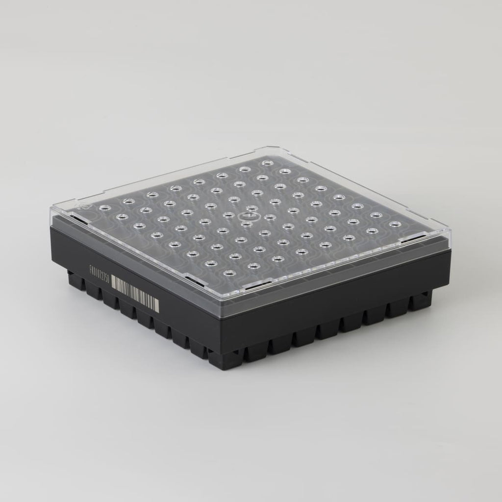 二次元バーコード付マイクロチューブ ROBOTUBE専用のフリーズボックスです。147×147mmのフットプリントで、ボックスの側面と底面には個体識別用のバーコードがレーザー刻印されています。