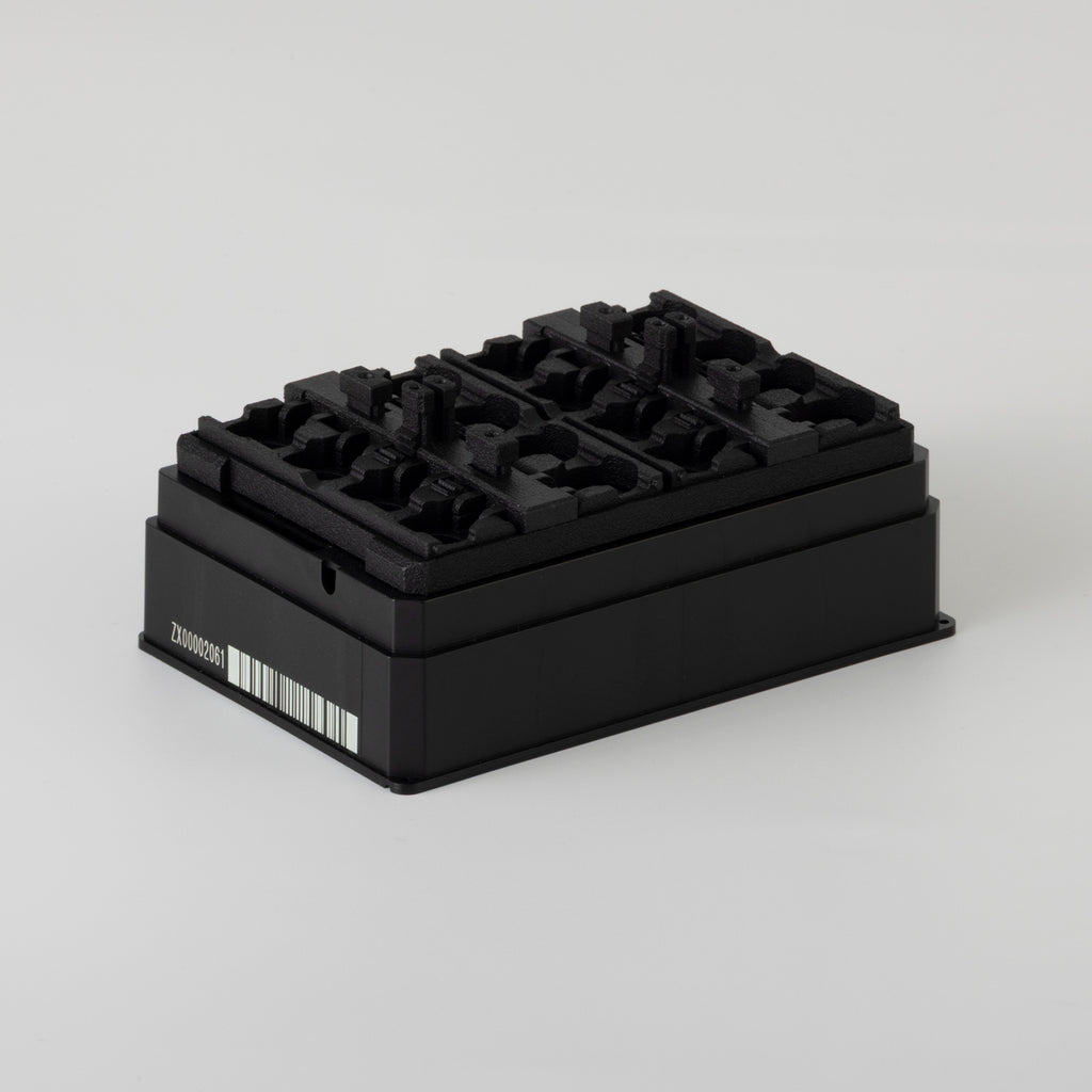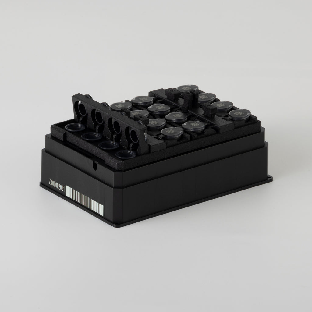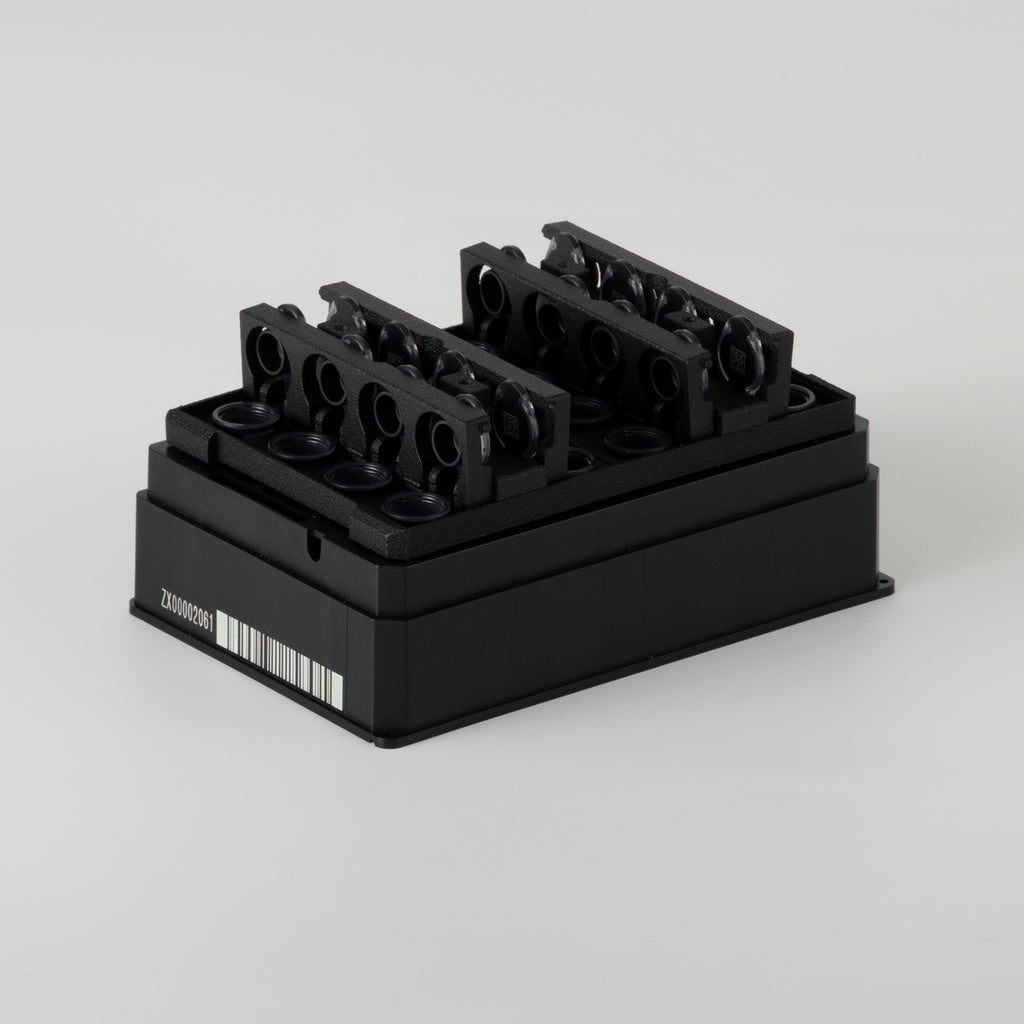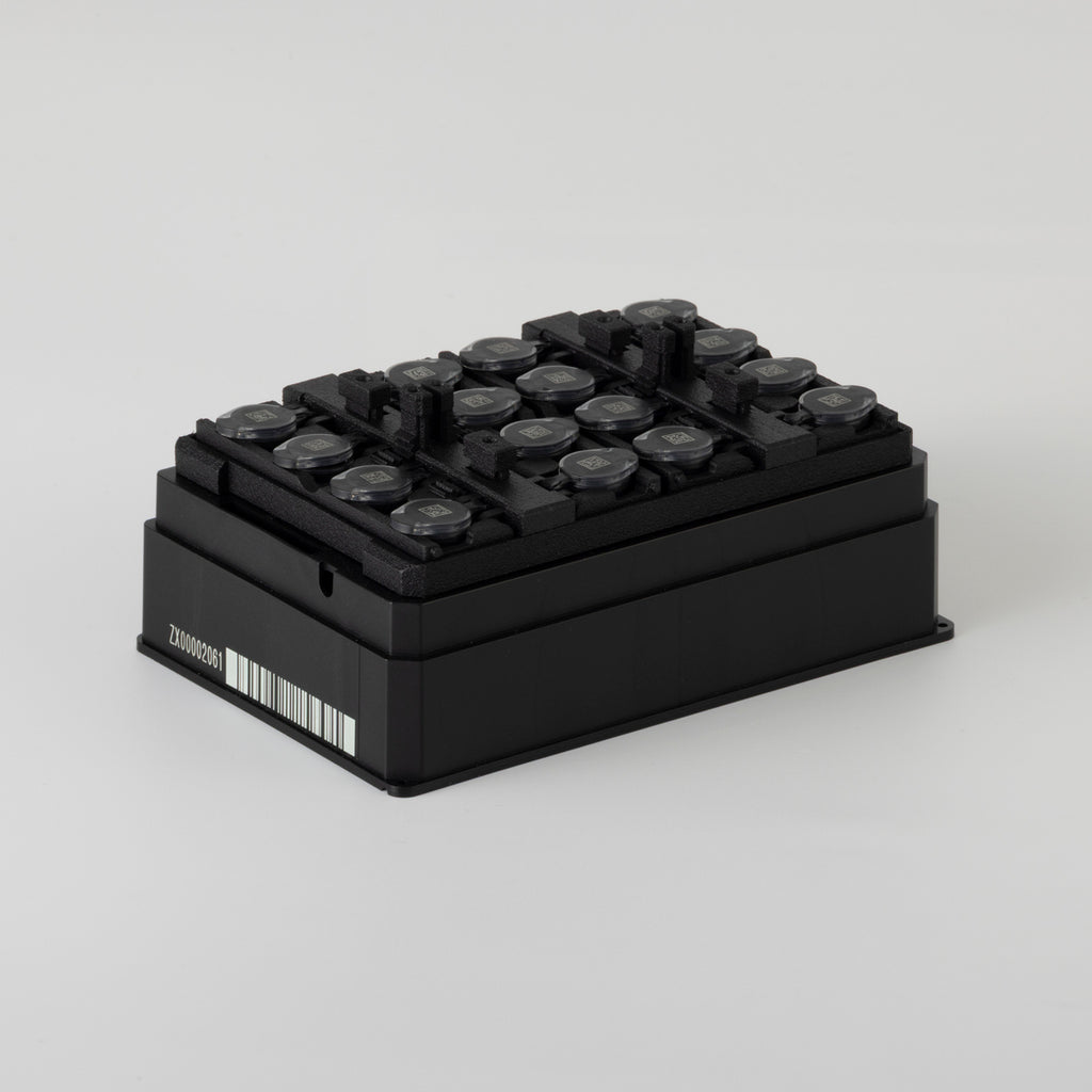 二次元バーコード付マイクロチューブ ROBOTUBE専用のSBS規格ラックです。16本収納できるマイクロプレートサイズで、更に自動化親和性を高めた工夫がなされています。ボックスの側面と底面には個体識別用のバーコードがレーザー刻印されています。